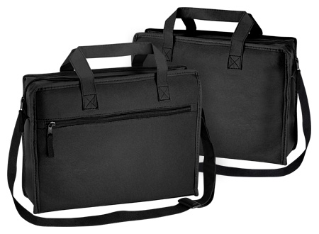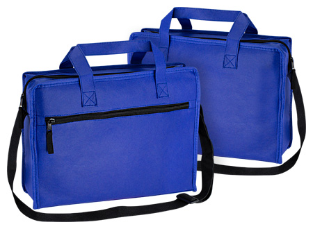 Maletín Portadocumentos, en tela ecológica nonwoven ultra-resistente de 120g/m2. 100% reciclable y reutilizable. Contiene 2 asas de 38cm. c/u aprox. con costuras reforzadas, cinta para colgar al hombro, base rellena interior de 36 x 9 cm. Compartimento principal + bolsillo delantero, ambos con cierre-eclair negro.