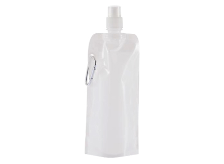 Botella de Plástico PET, con Mosquetón para colgar. Producto libre de BPA. Liviana y flexible, ideal para llevar a cualquier lugar, ya que vacía se puede plegar para transportar incluso dentro del bolsillo.